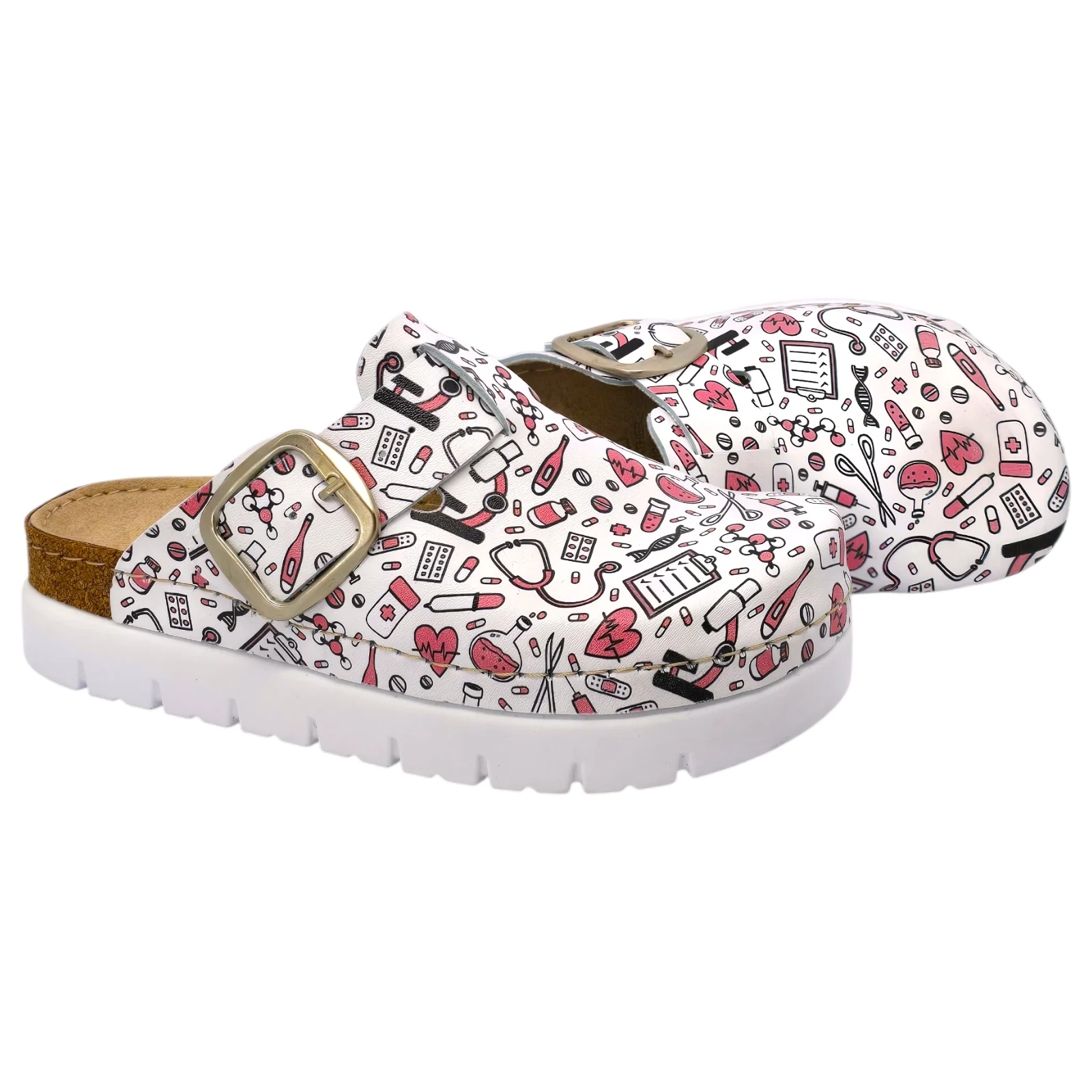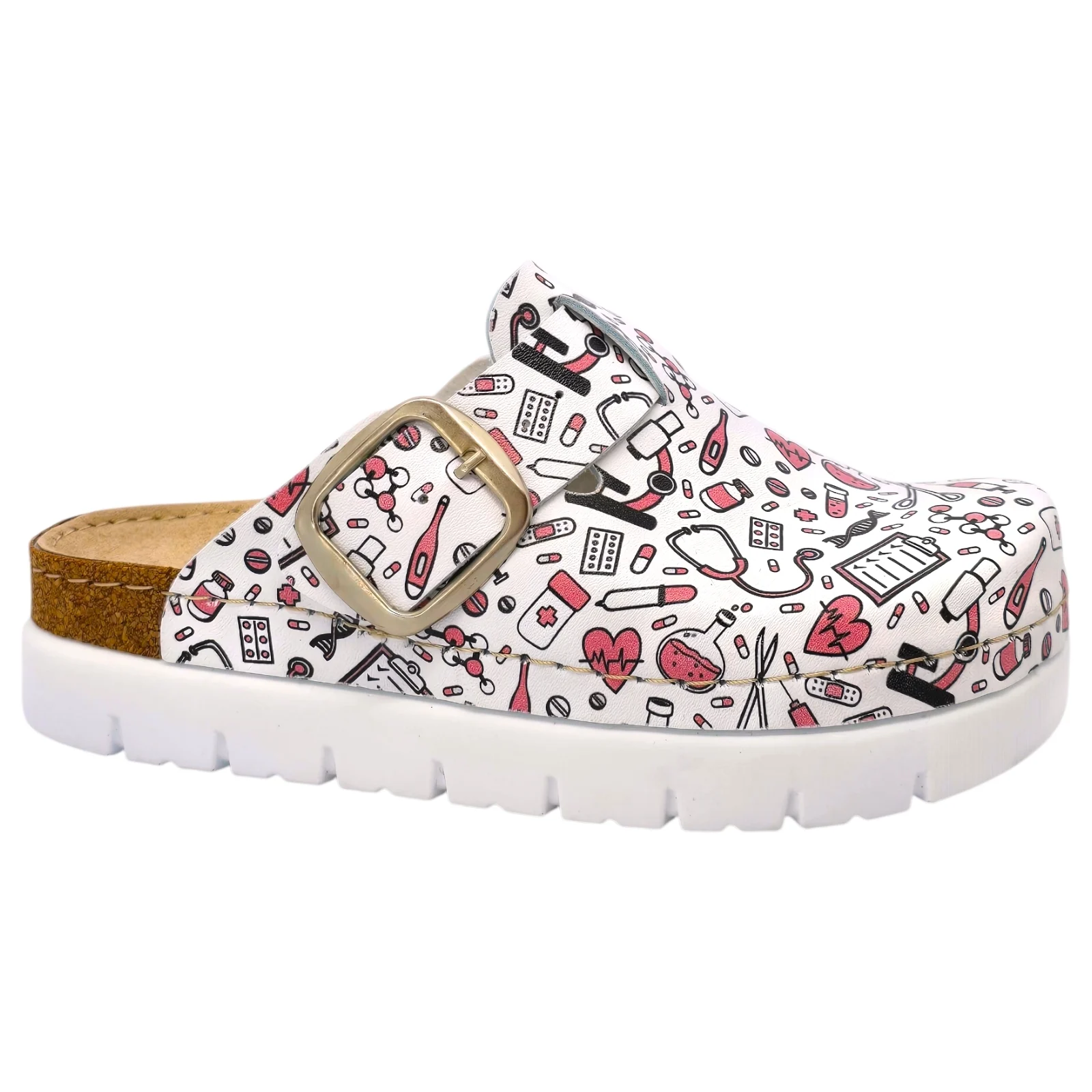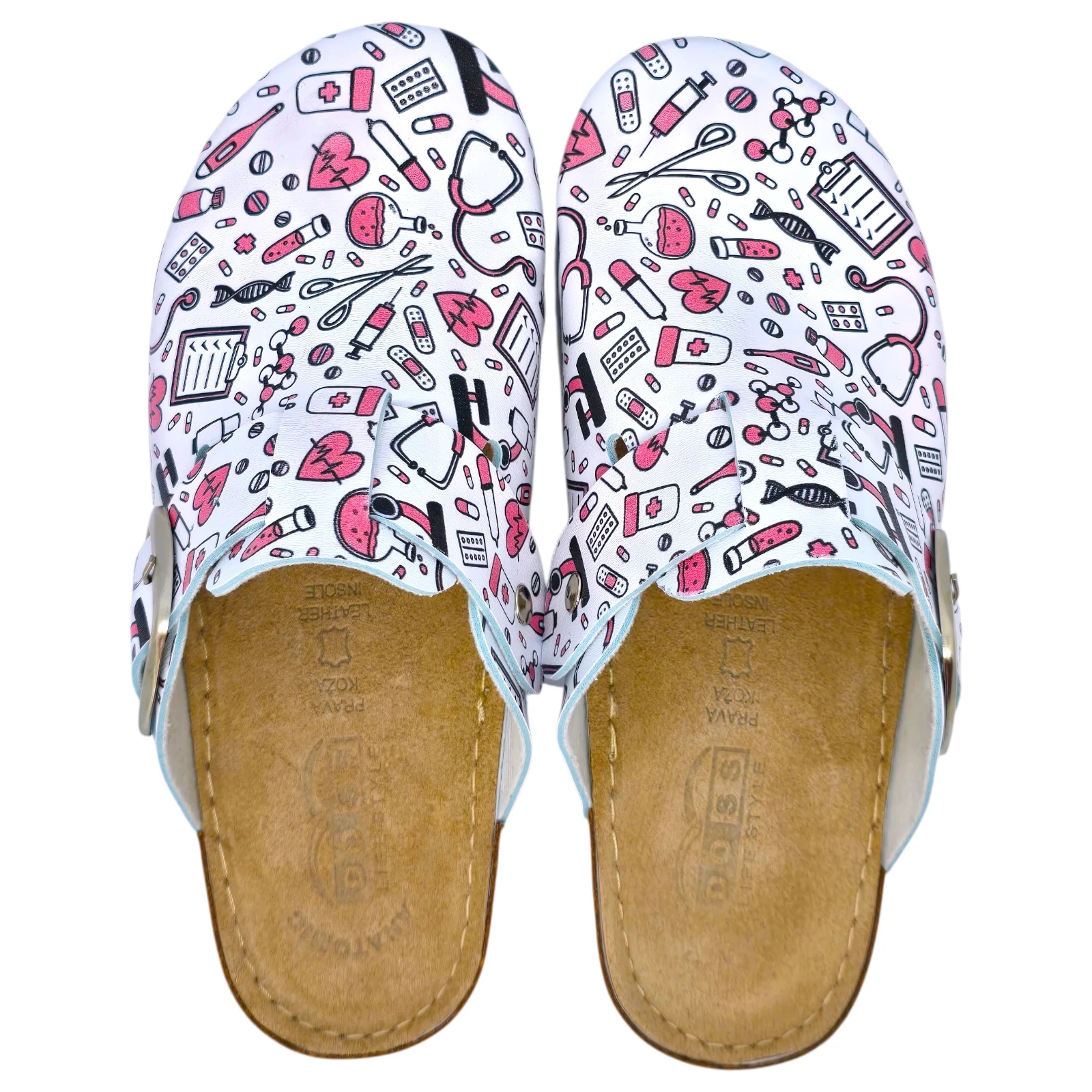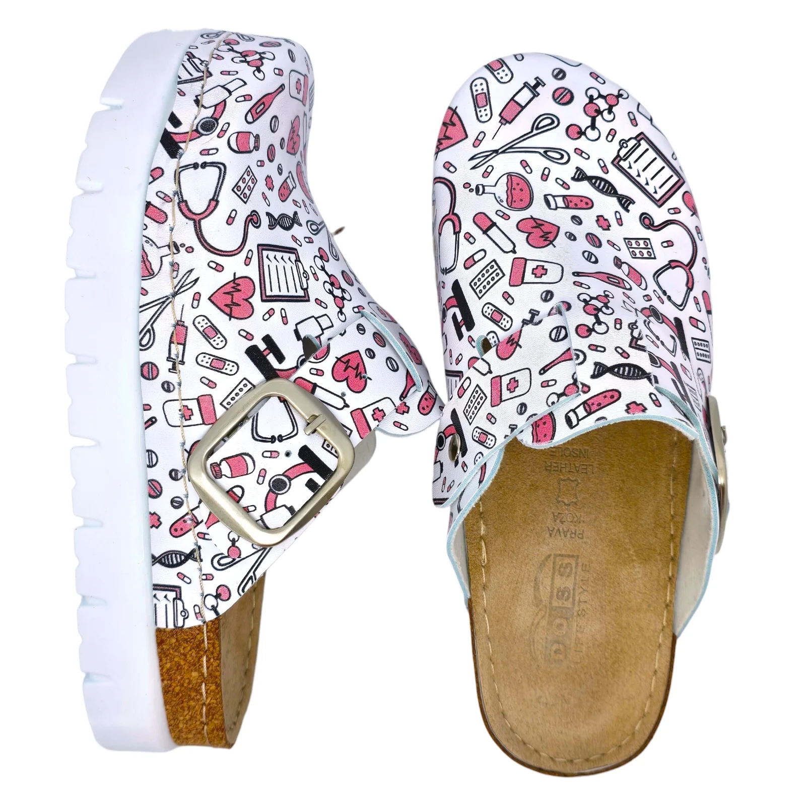 Медицинските сабо Doss модел 610, бели с розов медицински принт, са предназначени за хора, които търсят перфектен баланс между комфорт и качество. Изработени според анатомичната форма на стъпалото, тези сабо осигуряват оптимална опора за уморени и натоварени крака и са идеално решение както за професионална среда, така и за ежедневна употреба.